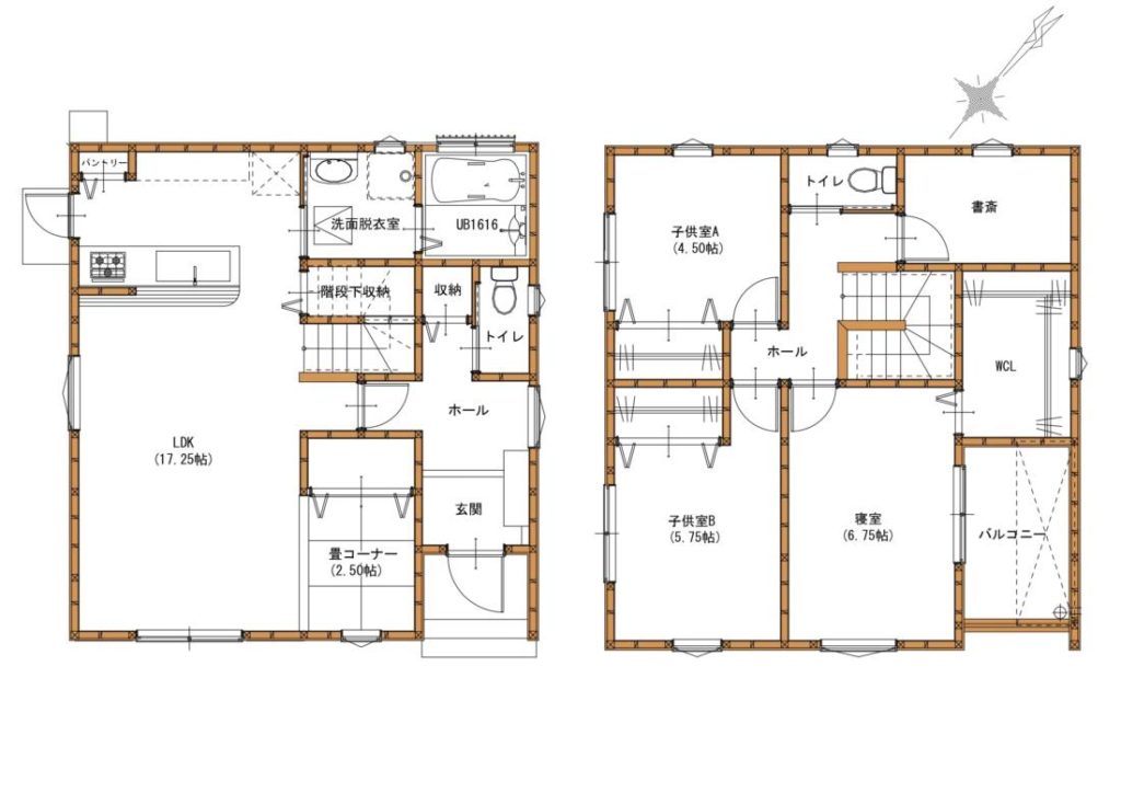 ウォークインクローゼットを二つ設けて