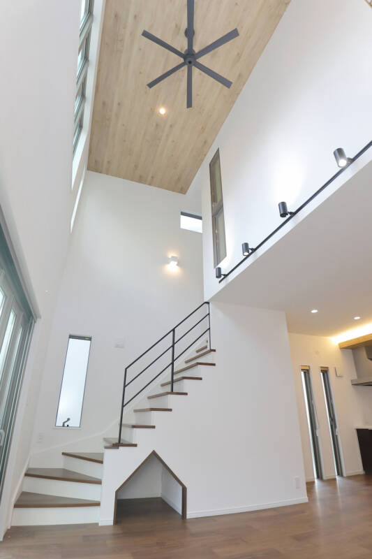 4人家族が暮らす螺旋階段が特徴的な住宅