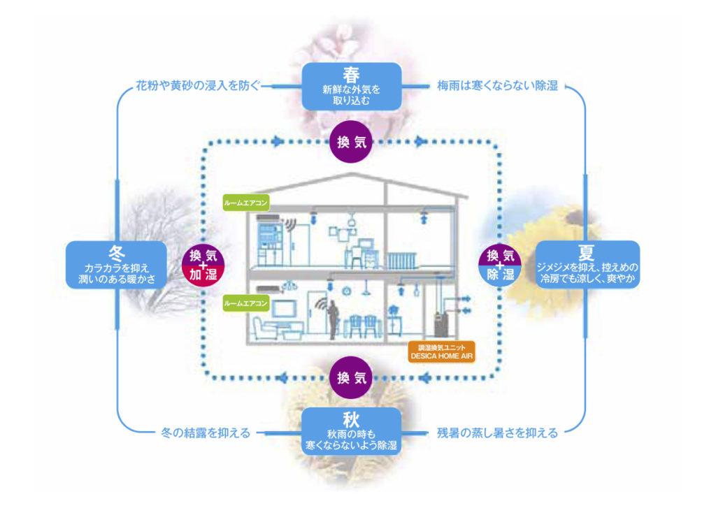 ★夏…湿気が高い梅雨時や夏場も、湿度調節でいつでも快適。エアコンの設定温度が控えめでも心地よく過ごせます。