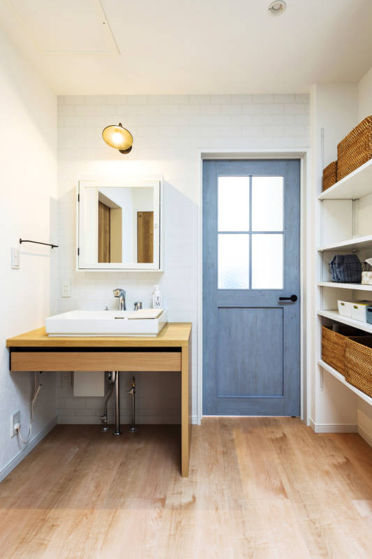 この季節はとくに、風邪やインフルエンザなどに気をつけたいものです。Tさま邸では、玄関ホールに洗面台を設置。帰宅後どこにも寄り道せずに、すぐに手洗いうがいができます。木の温もりがある造作洗面台の上にはシンプルなスクエア型の洗面ボール。スッキリした印象がインテリアやお部屋の雰囲気とマッチしています。