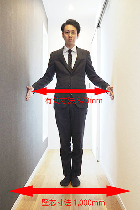 さて、この約9cmの違い。暮らしの中で実感するのはどこでしょうか?それは、廊下や階段、トイレなどです。約9cm広くなる分、ゆったりと過ごせるだけでなく、バリアフリーの面から見ても、約9cmの差はとても大きいのです。
