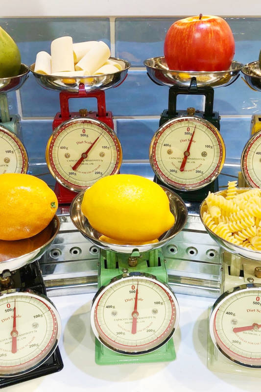 レトロな佇まいはどんなキッチンにも好相性。その存在感はキッチン風景をひきしめるスパイスにも。普段は、トレイにフルーツを乗せるなどしてインテリア感覚でも楽しめます。量って良し、飾って良しの優秀キッチンアイテムです♪