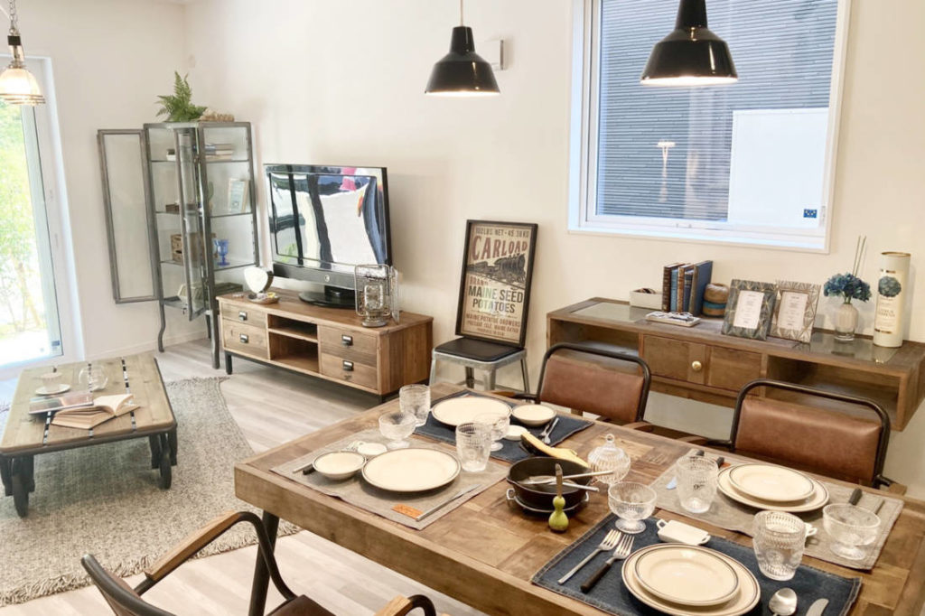 お部屋の中の家具や雑貨類はすべて、弊社がプロディースする「n-BASEMENT」の商品でコーディネートしています。遊びゴコロ満載のモノばかりで、自分らしい暮らしのイメージがどんどん湧いてくると思います。ぜひ、弊社コーディネーターによるオシャレな住空間を体感してください!