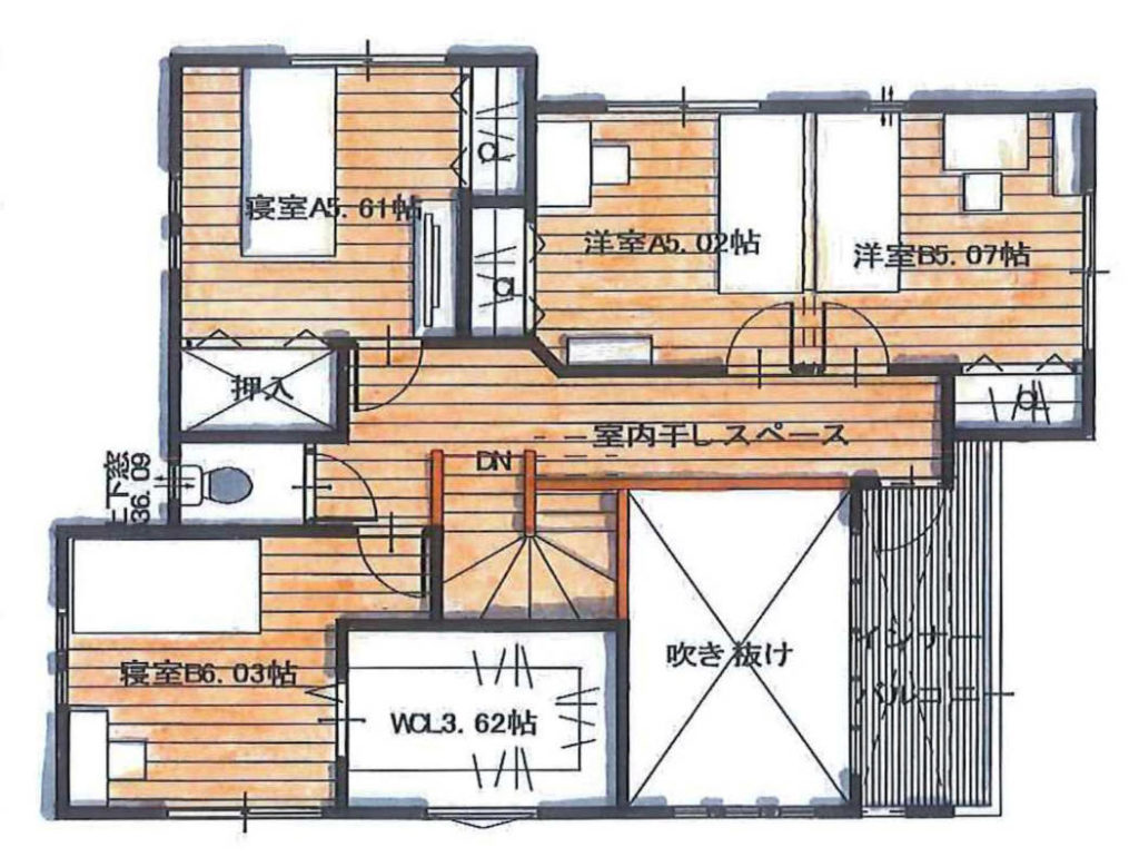 雨の日の洗濯は主婦(夫)の悩みのタネですが、こちらのプランでは、2階のインナーバルコニーのほかに、室内干しができるスペースを設けました。