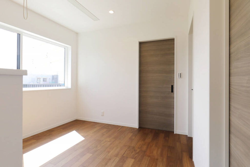 小上がりの和室で遊ぶお子さまの様子をいつでも見守れるよう、和室側の壁には室内窓を設置。小上がりなのでお子さまと目線が合いやすく、コミュニケーションもスムーズです。