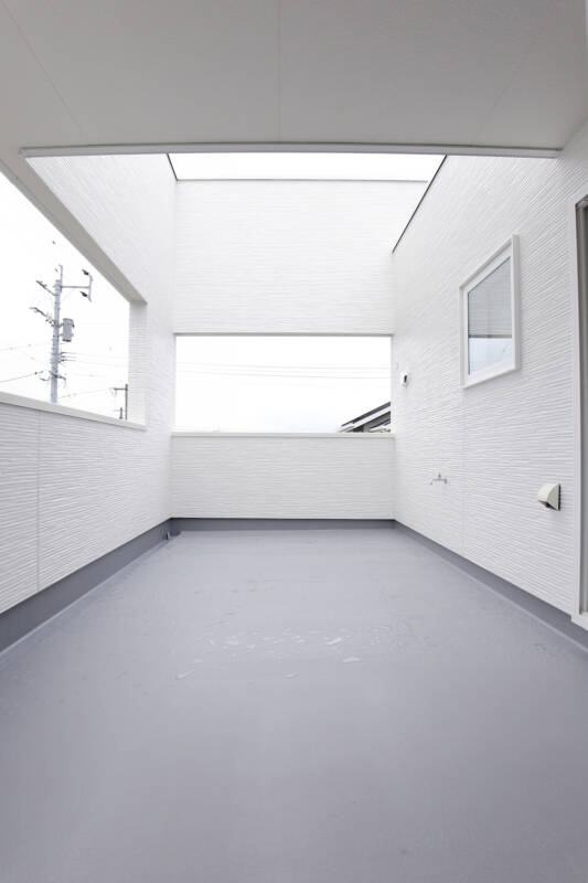 バルコニー部分は、屋根のある部分とオープンエリアを組み合わせ、雨が入り込みにくいスペースを取りながら明るさもしっかり確保。