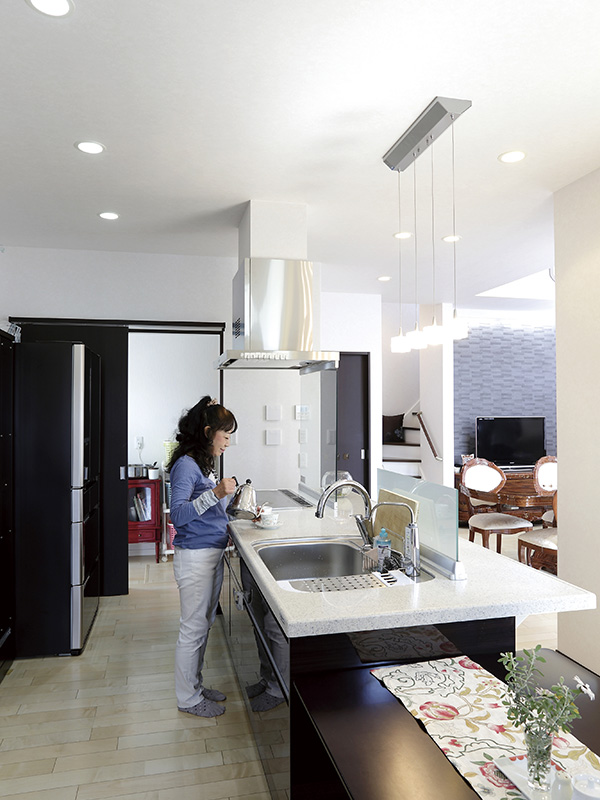 家族とコミュニケーションがとりやすいアイランドキッチン。でも、きちんと片付けていないと生活感が出すぎて、オシャレ度がダウンしてしまいますよね。