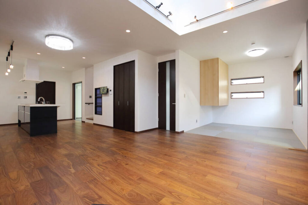 お子さまの遊び場としても、客間としても便利に使えるリビング和室ですが、こちらのお家ではあえて引き戸を設けませんでした。建具がない分、開放感がアップすることはもちろん、お掃除の面でも大きなメリットがあります。