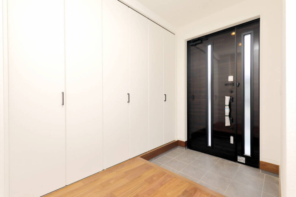 玄関収納は、玄関ホールの壁一面を収納スペースにしました。