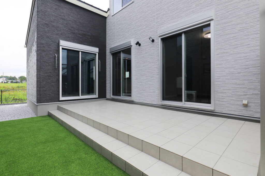 物干し場としてはもちろん、お子さまの遊び場やBBQなどにも大活躍してくれるスペースです。スポットライトや外部コンセントも設置しているので、夜にパーティーなどする時も便利ですね。
