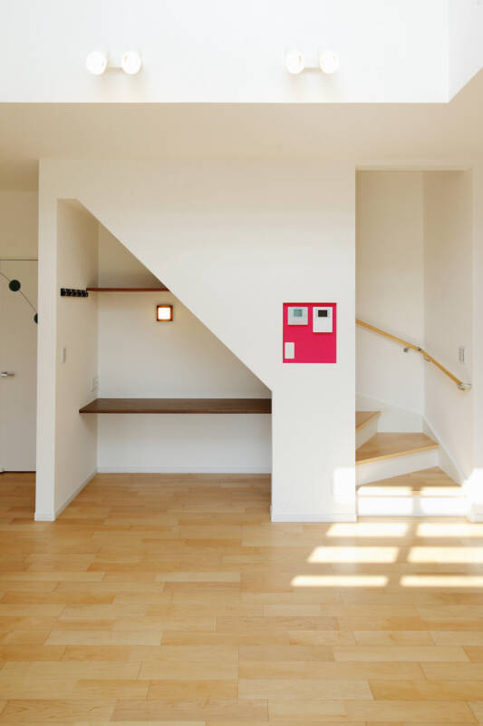 このようなワークスペースは「集中して勉強やリモートワークをしたい。でも家族の体温も感じていたい」という方にピッタリ。「リビングはできるだけ広くスッキリ使いたい」という方にも、階段下につくるワークカウンターはおすすめです。