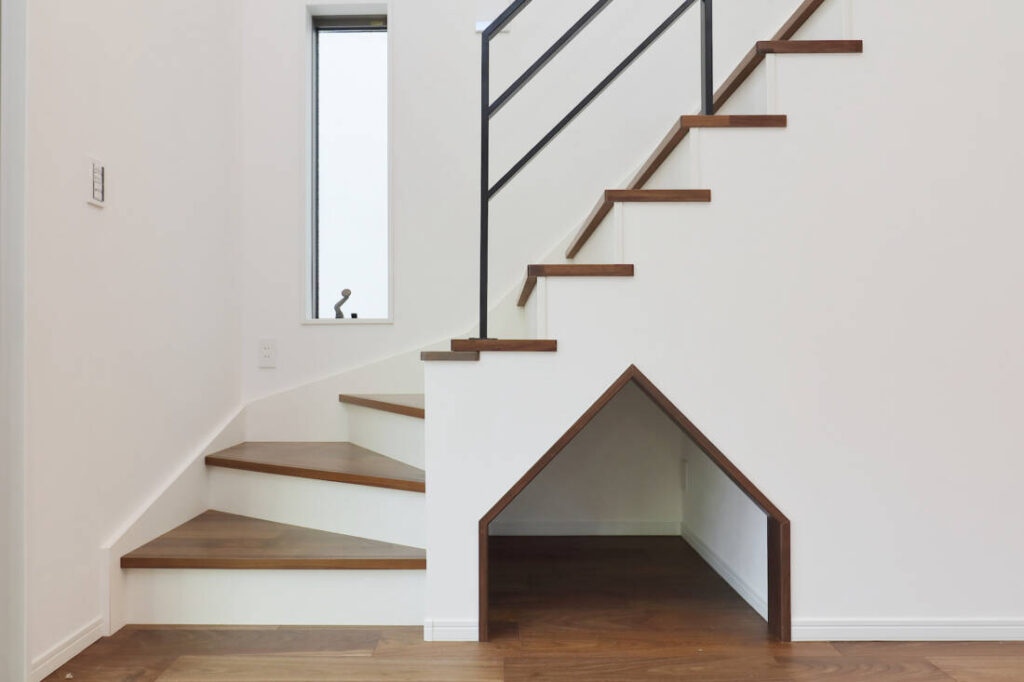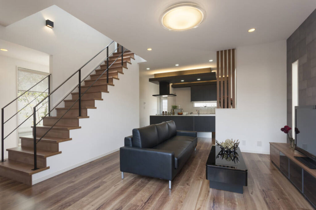 現在はリビング階段が主流と言っても過言ではありません。視界を遮らないシンプルなザインなら、リビングの開放感が損なわれずインテリアとしてもおしゃれなアクセントになります。