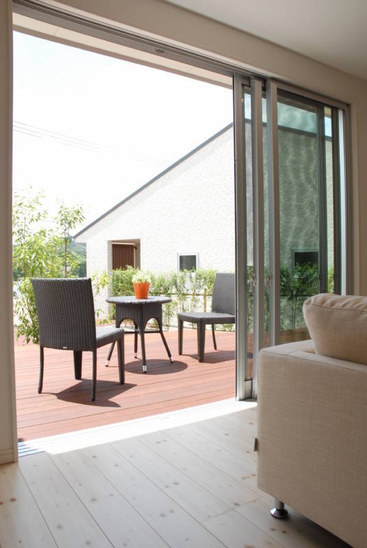 こちらのお家は、リビングの大きな窓からそのままウッドデッキに出られるように設計。