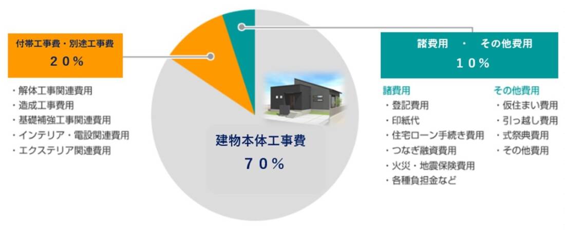 注文住宅には、建物本体工事費以外にも付帯工事費や諸費用などがかかってきます。