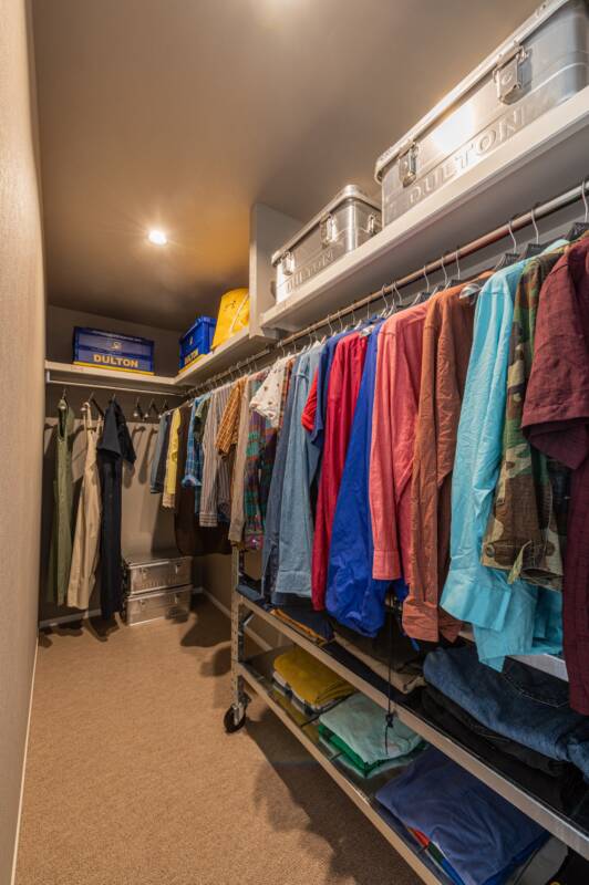 主寝室の奥にあるウォークインクローゼットは、衣類はもちろん、かさばる季節家電等も収納でき、寝室はいつもスッキリした状態を保てます。