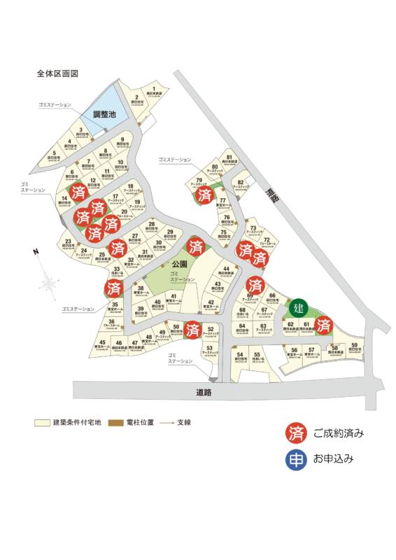 - 本物件は、建築条件付宅地です。売主は、土地売買契約締結後3ヶ月以内に、買主が販売代理会社との間で住宅の建築請負契約を締結していただくことを条件として本物件を販売いたします。この期間内に住宅の建築請負契約を締結しないことが確定したとき、もしくは住宅の建築請負契約が成立しなかった場合、または当該建築請負契約が解約された場合その他中途で終了した場合は、土地売買契約は白紙となり、受領した金銭は全額無利息でお返しいたします。